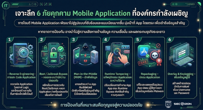 การโจมตี Mobile Application ไม่ได้เป็นเพียงเรื่องพื้นฐานอีกต่อไป แต่ได้พัฒนาไปสู่รูปแบบที่ซับซ้อนและแนบเนียนมากขึ้น โดยมุ่งเป้าไปที่ Application โดยตรง เพื่อเข้าถึงข้อมูลสำคัญของผู้ใช้งานและระบบหลังบ้านขององค์กร ซึ่งหากไม่มีการป้องกันที่เหมาะสม อาจนำไปสู่ความเสียหายทั้งด้านข้อมูล ความเชื่อมั่น และกระทบกับธุรกิจในระยะยาว